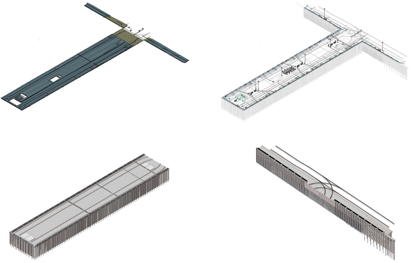 The work was divided up between MN3M based on disciplines. A Revit model was created for each discipline, and the structural discipline created a separate model for the pier and the marginal wharf (Figure 5). The model for the marginal wharf included all of the new elements to be constructed as part of the Pier 5 project as well as elements of the Pier 3 Replacement project (separate contract with construction occurring during design of Pier 5 Replacement), and all existing foundations and utilities within the vicinity of the portions of the wharf to be replaced. A majority of the existing elements were to be left in place, and this model was very helpful for designers in identifying potential conflicts with the new elements to be installed (Figure 7).