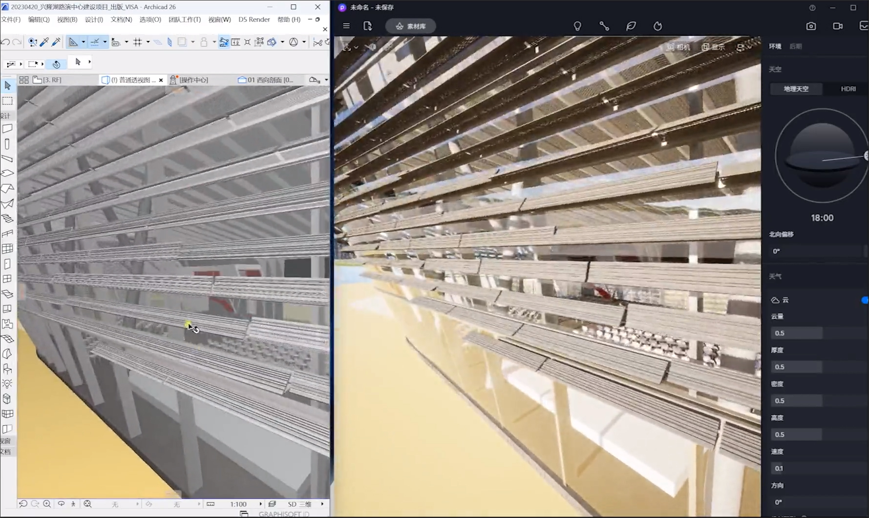 Also integral to the success of the project was the live integration of Archicad with a visualization application, D5 Render, which allowed the design team to see the impact of their design decisions in real time as well as allow the design to be clearly understood by the client and other collaborators (Figure 7). D5 Render is a real-time renderer based on ray tracing technology that was released in January 2020 by a Chinese developer, Dimension 5. Despite being so new, it has full-fledged rendering capabilities for creating professional-quality visualizations. In addition to Archicad, it includes live integration with several AEC applications such as SketchUp, SketchUp, 3ds Max, Revit, Rhino, Blender, and Cinema 4D.