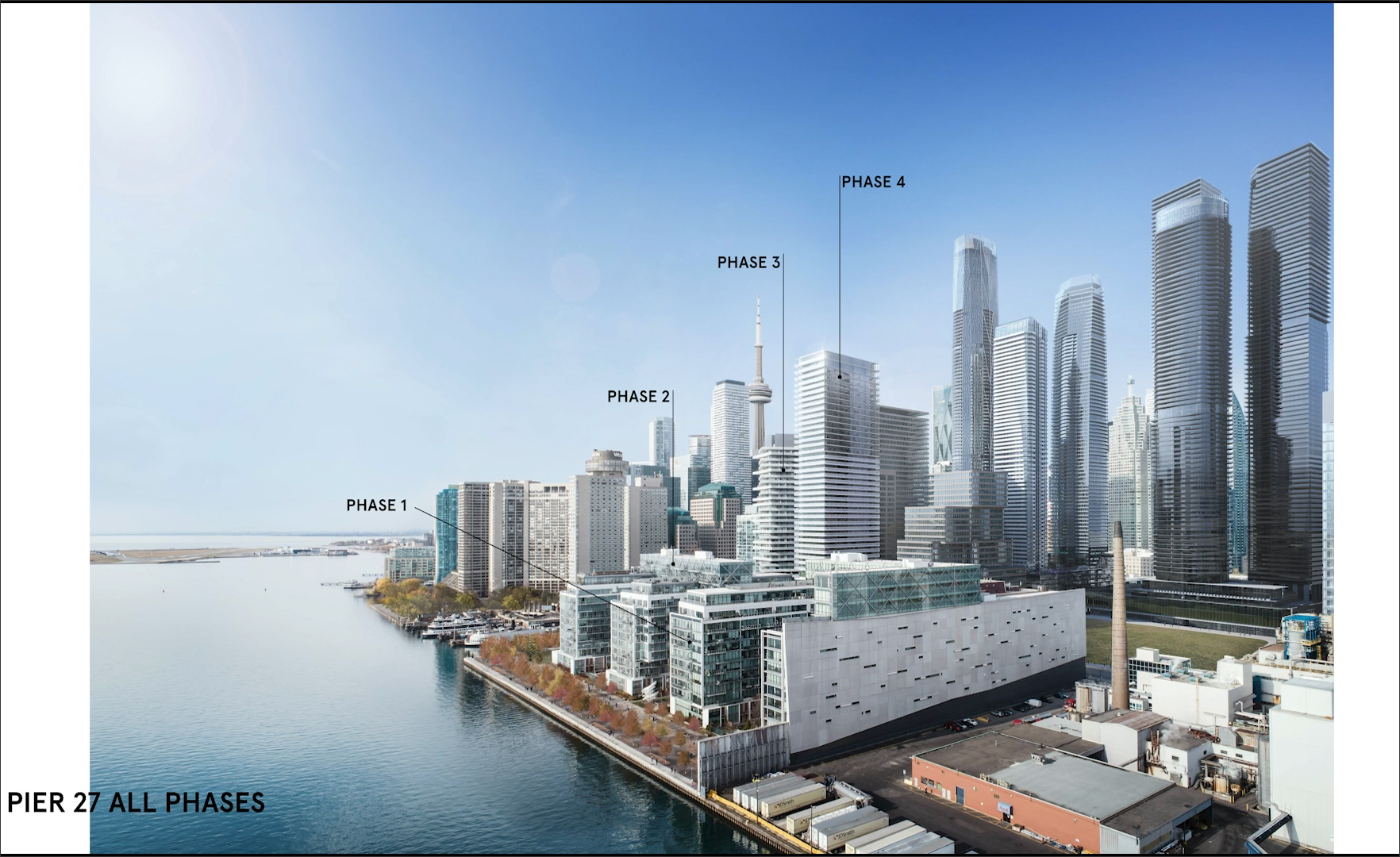 Pier 27 is an iconic residential development located along the waterfront of Lake Ontario in downtown Toronto, with luxury condominiums and penthouse-style suites offering stunning views of both the water and the sky (Figure 6). Designed by the Canadian firm, architectsAlliance, the project is being developed over four phases (Figure 7), of which three have been completed. Phases 1 and 2 consist of four rectilinear pier buildings arranged in pairs, each connected by a three-story cantilevered “bridge” that evokes the gantries used to load cargo on and off freighters in Toronto Harbour. Phase 3, recently completed, comprises a tower with rotating staggered floors, giving it a unique structural form and identity.