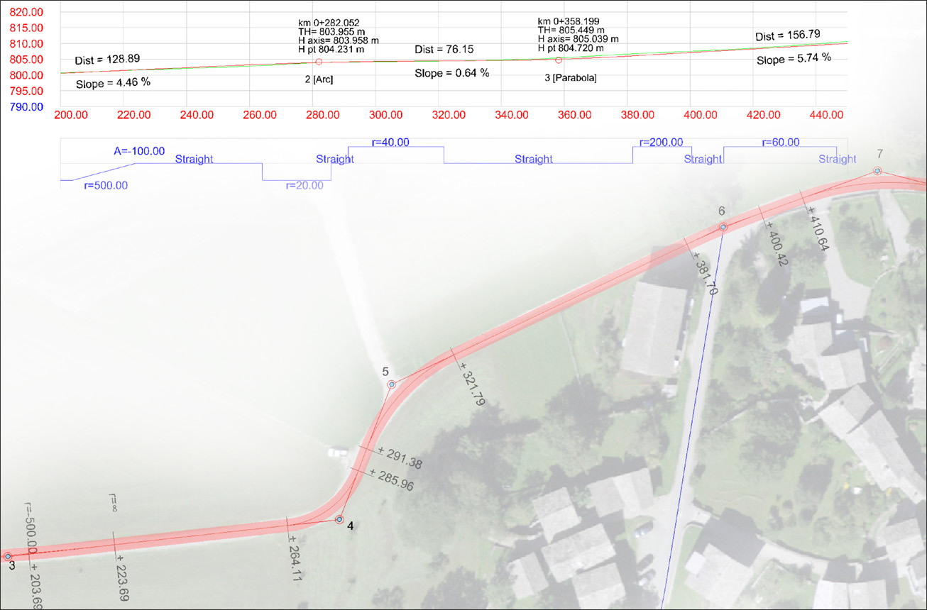 In addition to bridges, Allplan has now developed a dedicated parametric tool for road design as well. With this tool, the road model is generated from cross section profile definitions and any changes such as a modification to the road axis or a redefinition of the base terrain automatically recalculates and adjusts the road model (Figure 5). Additional capabilities include detailed terrain modeling with support for point clouds, creating templates to define the standard profile of the road body, automated model checking of the road design to detect geometrically faulty profiles or unfulfilled boundary conditions, the ability to also parametrically model utilities such as manholes and sewer and service lines as part of the road, and automatic creation of all drawings and reports that would be needed for the road construction (Figure 6).