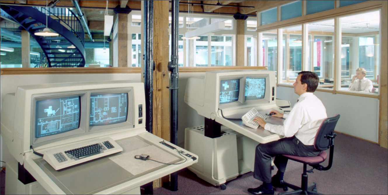 Corgan started incorporating digital technologies in the mid-1980s with our investment in an Intergraph dual monitor CAD machine (Figure 3). As a leader in technical project delivery, a CAD system of this caliber helped maintain a high level of quality control and standardization.